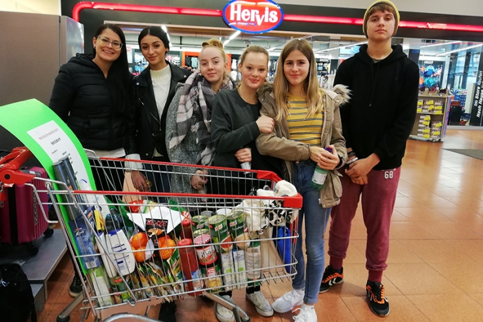 Schülerinnen und Schüler der HLW Leoben sammelten Geld- und Sachspenden. Foto: HLW Leoben
