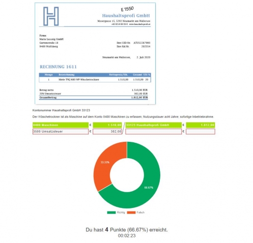 Die Buchungssätze werden automatisch ausgewertet! Schülerinnen und Schüler können somit gleich die Resultate sehen.