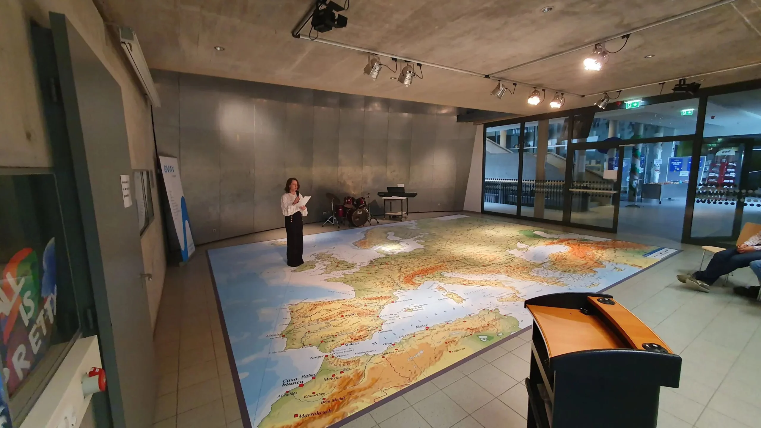 Die begehbare Europakarte von Hölzel | Aula des BG Wels | Bilder mit freundlicher Genehmigung des BG Wels und Fr. Dir. Karin Schachner