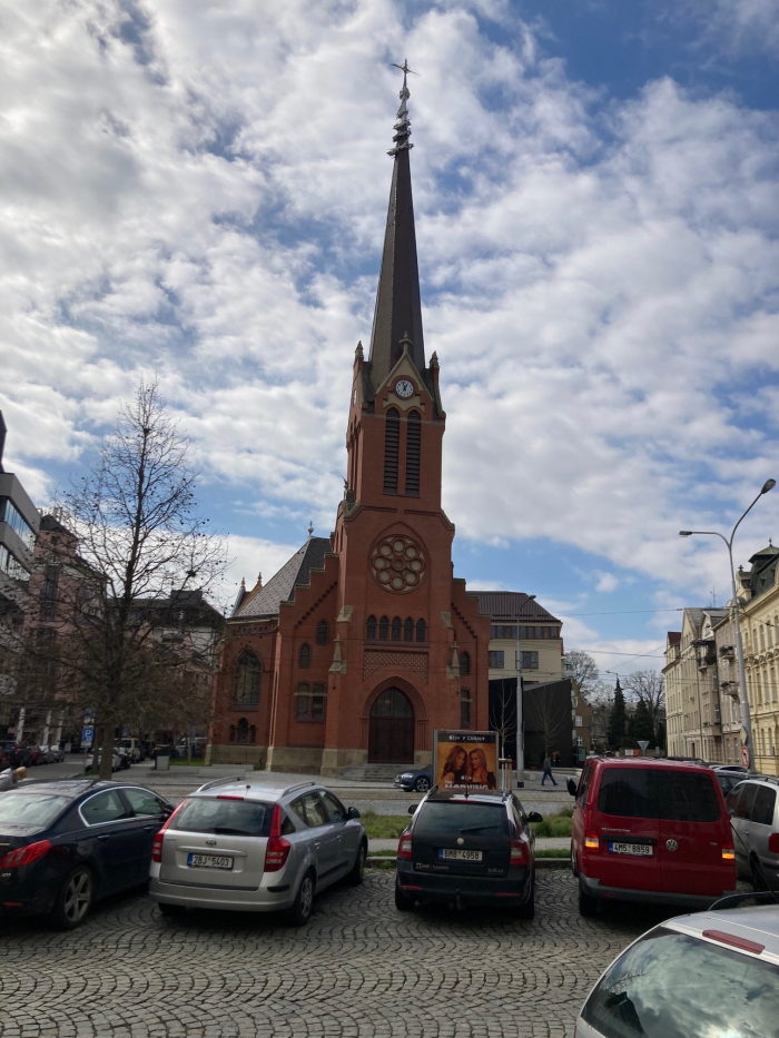 Veranstaltungszentrum „Rote Kirche“, eine ehemalige evangelische Kirche. Foto: L. Birsak, 2024