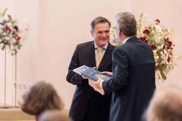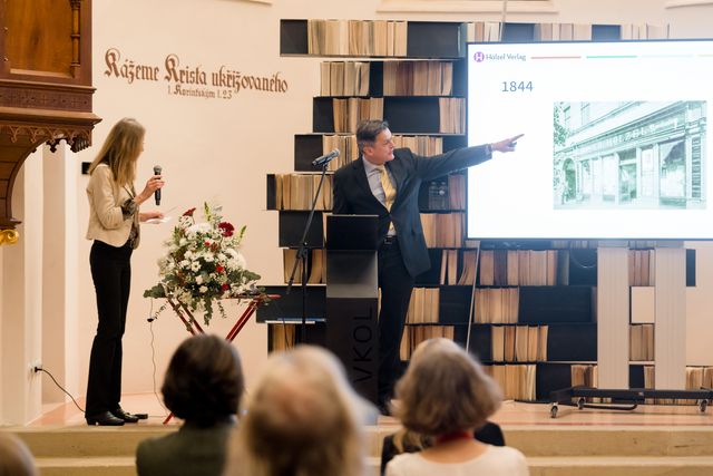 Lukas Birsak, heute Geschäftsführer des Hölzel Verlags, berichtete im Rahmen der Veranstaltung über die Bedeutung von Eduard Hölzel für die Entwicklung des Verlags und dessen innovativen Geist, der das Unternehmen bis heute prägt. Anwesend waren nicht nur der Bürgermeister der Stadt Olmütz, sondern auch viele Vertreterinnen und Vertreter aus Kultur und Wissenschaft Mährens und österreichischer Institutionen in Tschechien.