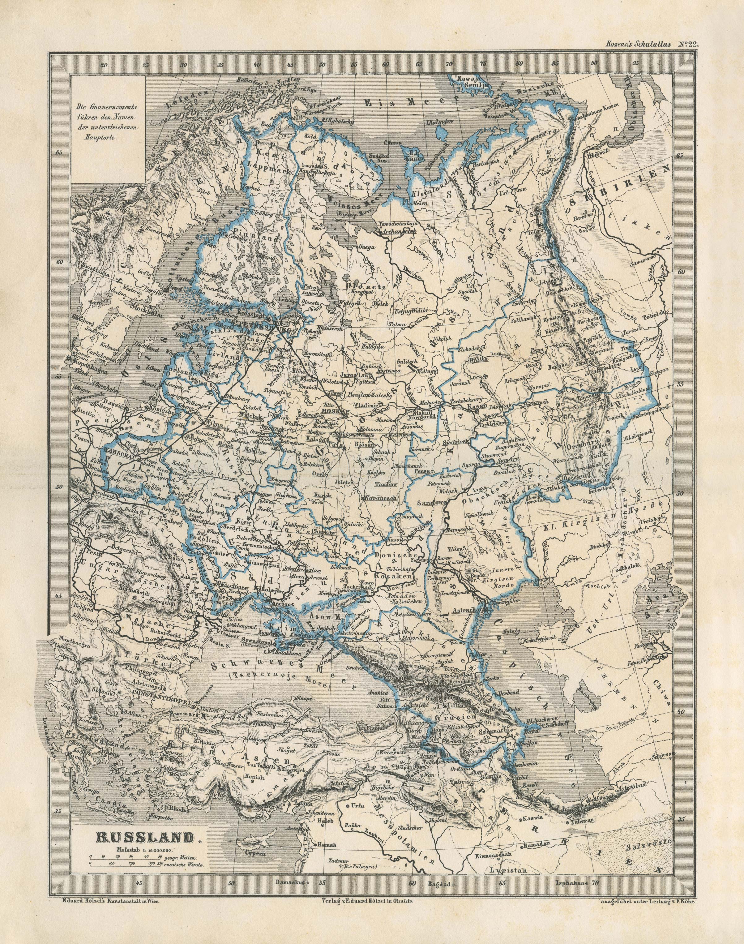 Karte Russland aus Geographischer Schul-Atlas für die Gymnasien, Real- und Handelsschulen der österreichischen Monarchie von Blasius Kozenn. Ed. Hölzel, Wien, 1861. Karte Nr. 22.