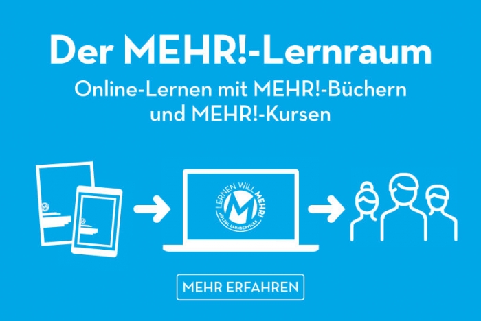 Aus den M-Books wurden MEHR!-Bücher, aus dem Lernraum wurde der MEHR!-Lernaum und aus den Lerngruppen wurden die MEHR!-Kurse. MEHR! Innovation und Service für Ihren Unterricht: im MEHR!-Lernraum MEHR!-Bücher aktivieren, MEHR!-Kurse pro Klasse, Fach oder Schüler/innengruppe anlegen und die Online-Unterrichtsmaterialien nutzen, erweitern, teilen und erstellen. Die optimale Verbindung zwischen Buch und Unterrichtsmaterial.