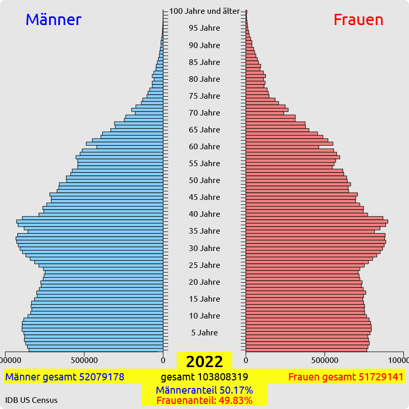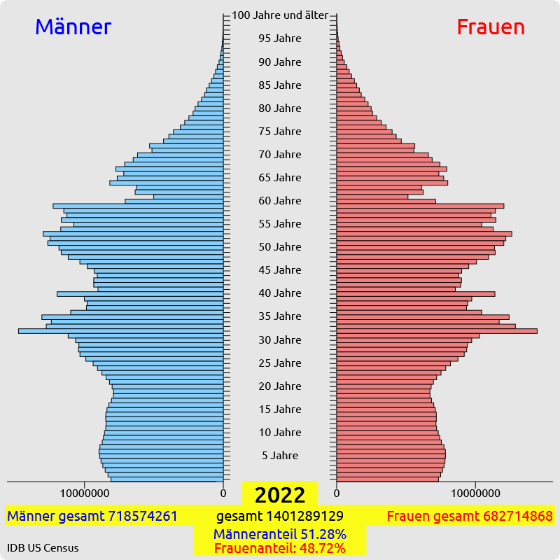 Zusätzlich sind seit 25. April 2022 animierte Altersaufbaudiagramme aller 194 Staaten der Erde über die Funktion GEOBUTTONS verfügbar. >> Ein Beispiel zu Katar finden Sie hier.