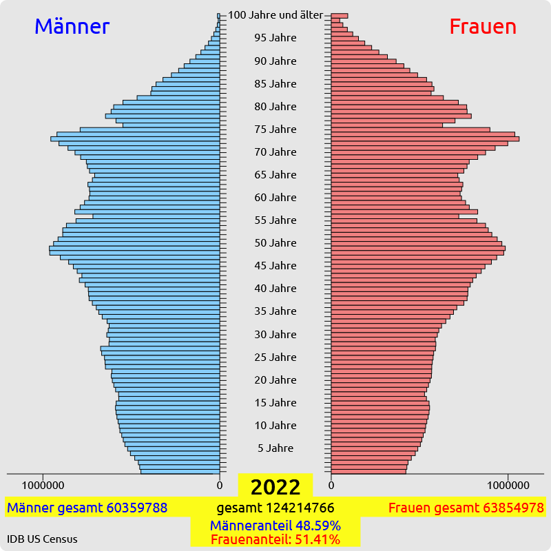 Ein Gegenbeispiel zu Niger mit einer Urnenform ist das Land mit dem höchsten Medianalter der Welt (außer den Kleinstaaten Monaco und Saint Pierre and Miquelon): Japan.