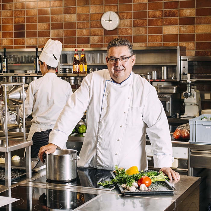 Gerhard Pachschwöll-Kral unterrichtet Kochen an der Höheren Lehranstalt für Tourismus in Krems