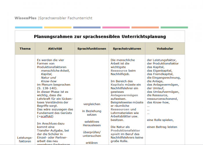 Den gesamten Beitrag zum Download inklusive leere Vorlage für den Planungsrahmen, Übungen und Lösungen finden Sie im MANZ Online-Lehrerzimmer unter WISSENPLUS.