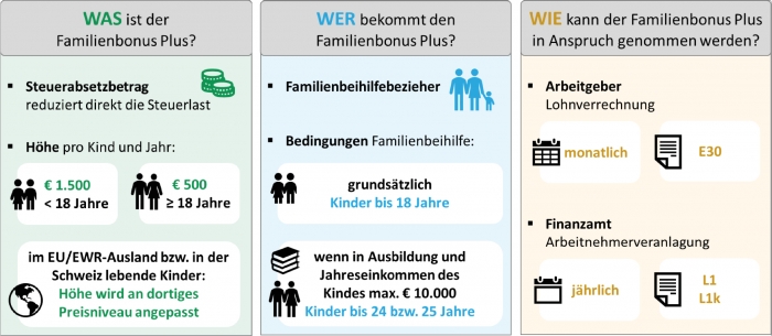 Rechnungswesen/Unternehmensrechnung: Aus dem Steuerzuckerl „Familienbonus Plus“ lässt sich viel lernen. Wir haben Info- und Arbeitsblätter samt Fallbeispielen für Ihren Unterricht zusammen gestellt.