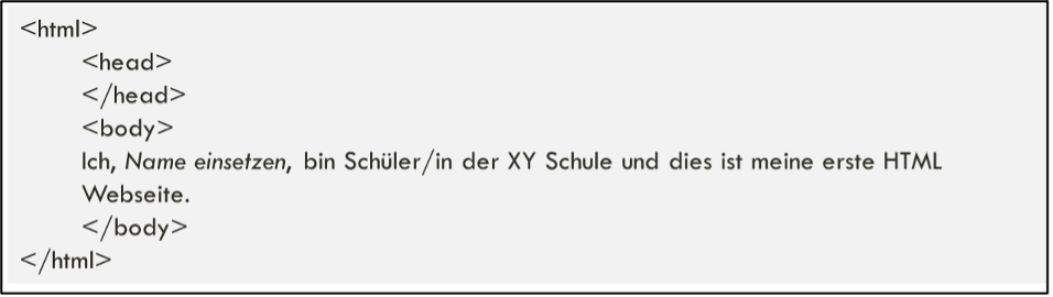 Generell werden Befehle (Kommandos) in HTML durch Spitzklammern gekennzeichnet. Die Kommandos nennt man „Tags“ und sie werden grundsätzlich am Anfang und am Ende eines Kommandos gesetzt. Jede HTML-Seite benötigt eine Grundstruktur bestehend aus den Tags <html>, <head> und <body>.