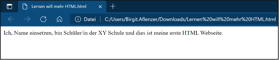 Öffnet man die Datei in einem Browser, sieht das Ergebnis so aus: