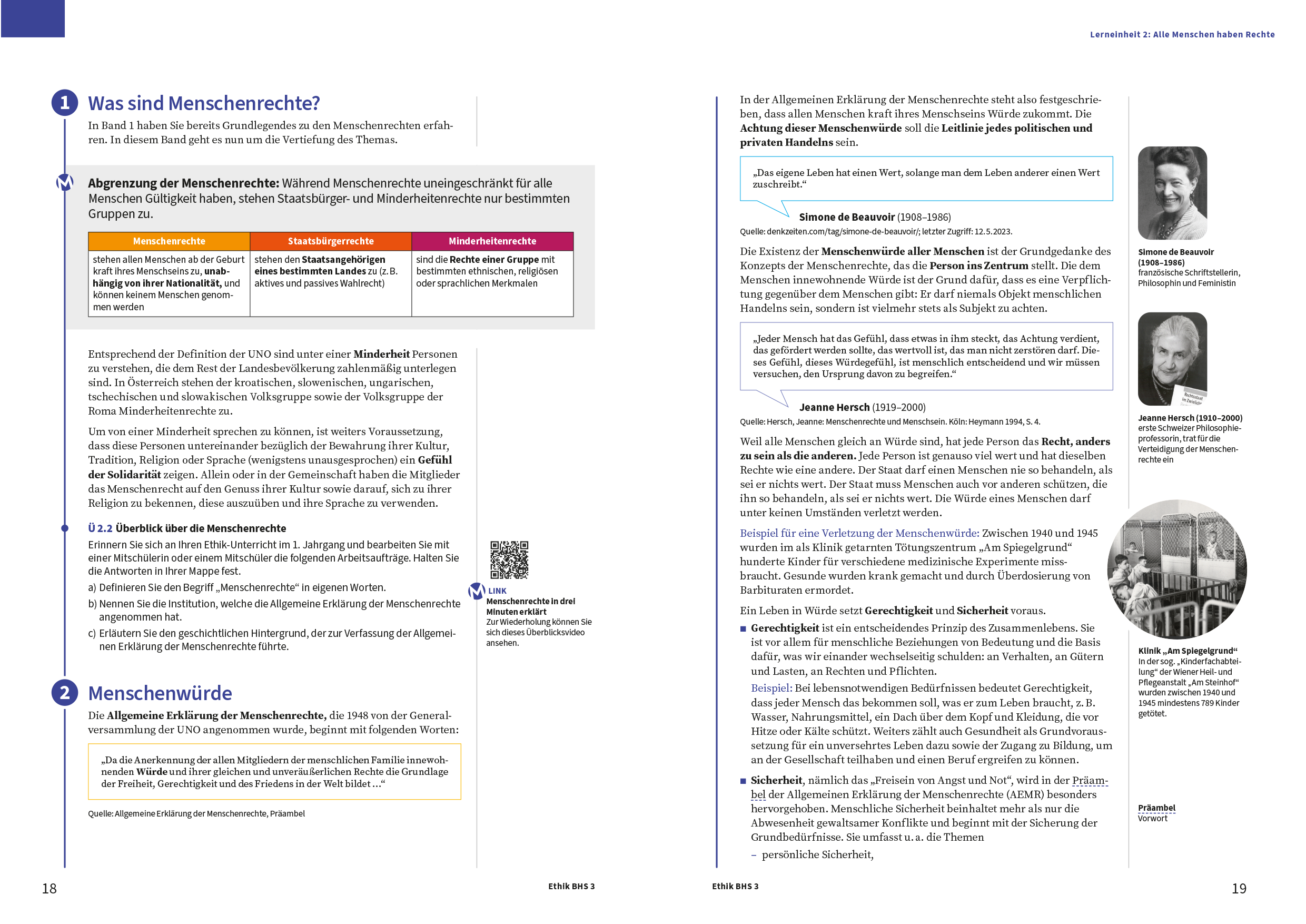 Abb. 1: In den 3er-Bänder der Ethik-Reihen für AHS, BHS und BMS finden sich vertiefende Lerninhalte zum Thema Menschenrechte.