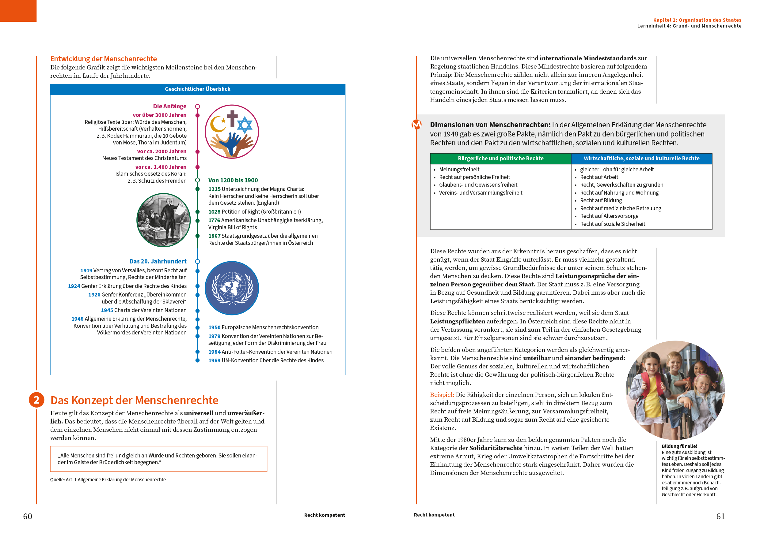 Abb. 2: In Recht kompetent, Auflage 2023, wird unter anderem die Entwicklung und das Konzept der Menschenrechte behandelt.