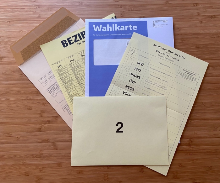 Sobald du deine Wahlkarte bekommen hast, kannst du den Stimmzettel persönlich, unbeobachtet und ohne fremden Einfluss ausfüllen. Dann gibst du den ausgefüllten Stimmzettel in das Wahlkuvert (gummiert) und klebst es zu. Dann legst du das Wahlkuvert in das Wahlkartenkuvert, unterschreibst die eidesstattliche Erklärung, klebst das Wahlkartenkuvert zu und stellst sicher, dass die Wahlkarte rechtzeitig in der Wahlbehörde einlangt.